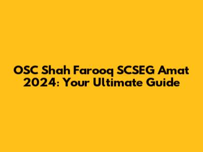 OSC Shah Farooq SCSEG Amat 2024: Your Ultimate Guide