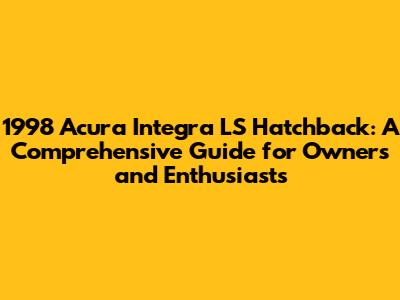 1998 Acura Integra LS Hatchback: Ultimate Guide