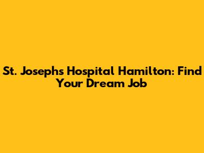 St. Joseph's Hospital Hamilton: Find Your Dream Job
