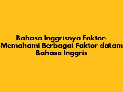 Hey guys! Pernah nggak sih kalian bingung pas mau ngomong atau nulis terus kepikiran, "Apa sih bahasa Inggrisnya 'faktor'?" Atau mungkin kalian lagi belajar dan nemu kata ini di berbagai konteks, tapi masih belum yakin gimana cara pakai yang pas. Nah, kali ini kita bakal kupas tuntas soal bahasa Inggrisnya faktor dan berbagai nuansanya. Dijamin setelah baca ini, kalian bakal makin pede ngomongin berbagai macam faktor dalam bahasa Inggris, entah itu dalam percakapan sehari-hari, tugas sekolah, atau bahkan presentasi profesional. Yuk, kita mulai petualangan bahasa kita!