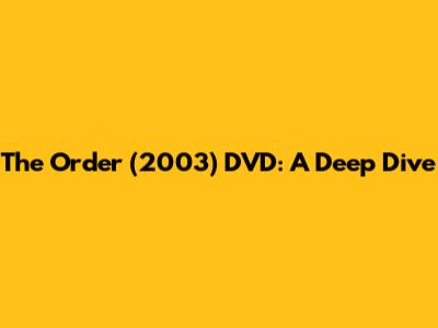 The Order (2003) DVD: A Deep Dive