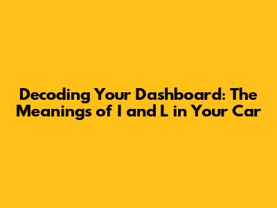 Decoding Your Dashboard: The Meanings Of 'I' And 'L' In Your Car