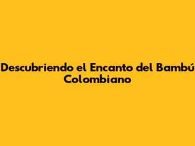 Descubriendo El Encanto Del Bambú Colombiano
