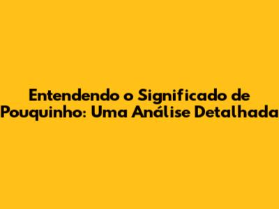 O Que Exatamente Quer Dizer "Pouquinho"?