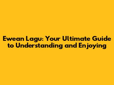 Ewean Lagu: A Comprehensive Guide