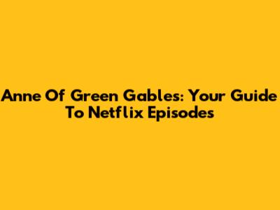 Anne Of Green Gables: Your Guide To Netflix Episodes