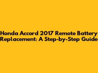 Honda Accord 2017: Remote Battery Replacement Guide