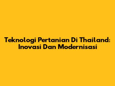 Teknologi Pertanian Di Thailand: Inovasi Dan Modernisasi