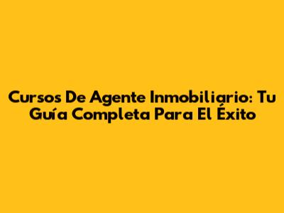 Cursos De Agente Inmobiliario: Tu Guía Completa Para El Éxito