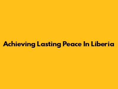 Achieving Lasting Peace In Liberia