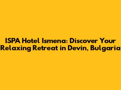 ISPA Hotel Ismena is more than just a hotel; it's a destination where you can escape the everyday and immerse yourself in a world of tranquility and rejuvenation. With its stunning location, luxurious accommodations, exceptional spa treatments, and a variety of amenities, this hotel offers an unforgettable experience. Devin, Bulgaria, and the Rhodope Mountains are just perfect. So, whether you're seeking a romantic getaway, a family vacation, or simply a chance to unwind and recharge, ISPA Hotel Ismena is the perfect choice. Trust me, guys, you won't regret it! Start planning your trip today, and get ready to experience the magic of ISPA Hotel Ismena!