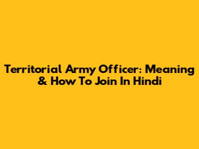 Territorial Army Officer: Meaning & How To Join In Hindi