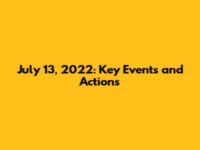 July 13, 2022: Key Events And Actions