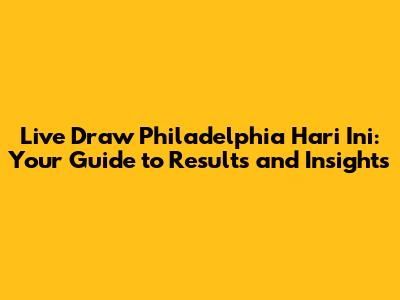 Live Draw Philadelphia Today: Results & Insights