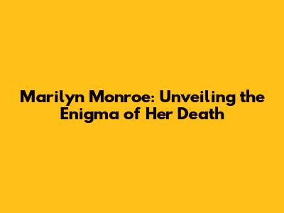 Marilyn Monroe: Unveiling The Enigma Of Her Death