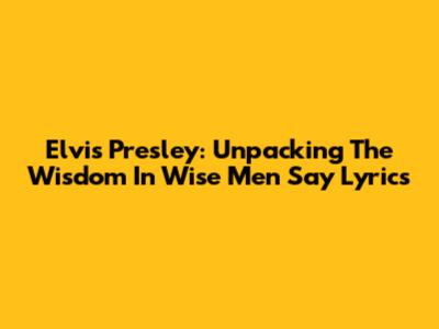Elvis Presley: Unpacking The Wisdom In "Wise Men Say" Lyrics