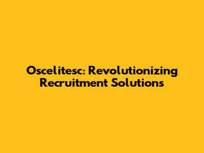 - Career Advancement: Oscelitesc recruitment solutions provides personalized support to job seekers. We help you find job opportunities and advance your career. We are committed to helping you find new opportunities and advance your career.