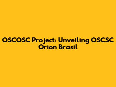 Diving into OSCSC Orion Brasil: Goals and Objectives