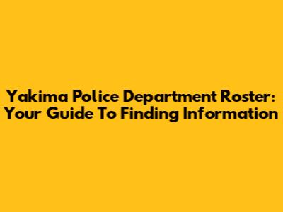 Yakima Police Department Roster: Your Guide To Finding Information