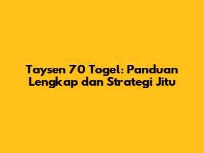 Taysen 70 Togel: Panduan Lengkap Dan Strategi Jitu