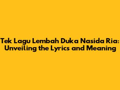 Hey music lovers! Ever found yourself utterly captivated by a song? That's how many of us feel about 'Lembah Duka' by Nasida Ria. This iconic piece isn't just a tune; it's a journey, a story, and a powerful message all rolled into one. Let's get down to the nitty-gritty and explore the lyrics, the meaning, and why this song has resonated with so many people over the years. We'll delve into the core of the song, examining the lyrics line by line to discover its secrets. Prepare to get your heartstrings tugged and your mind ignited! So, what makes 'Lembah Duka' so special, and why does it continue to be a favorite among listeners of all ages? Let's find out, shall we?